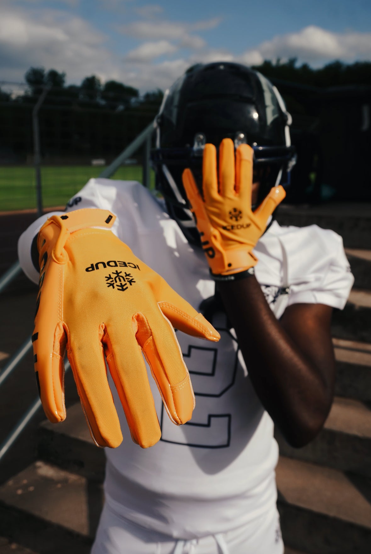 Get ready to dominate the gridiron with ICED UP’s Essential Football Gloves. Available now in White, Black, Red, Blue, Green, and Orange. Elevate your game – because every detail counts.